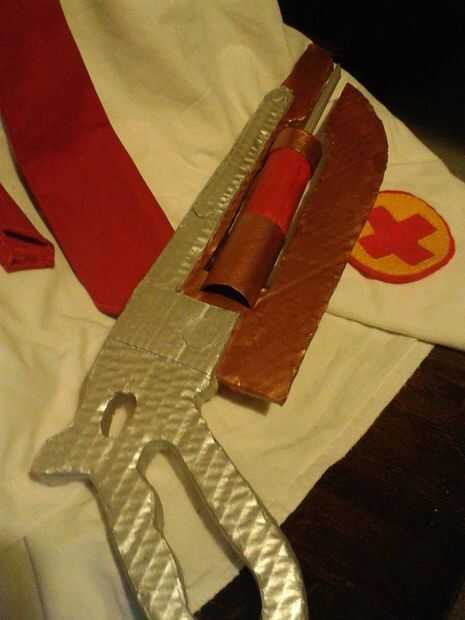 Así que ahí lo tenemos, queridos lectores! ¡ Listo! Aquí está mi producto terminado (acompañado por una corbata roja y un parche de "Médico" que hice como otras piezas para el cosplay), estoy bastante orgulloso de decirlo yo mismo. Si estás aquí sólo para el viaje, entonces muchas gracias por leer esto hasta ahora. Si usted hizo lo mismo, me encantaría ver cómo le fue entonces me dan un comentario y quisiera saber si estaba bien! Mi producto final no se ve completamente impecable, si quieres algo profesional entonces usted está probablemente mejor con madera o espuma o algo loco como eso. Esto es sólo mi poco presupuesto cosplay apoyo ^-^.