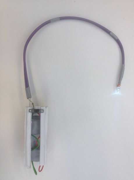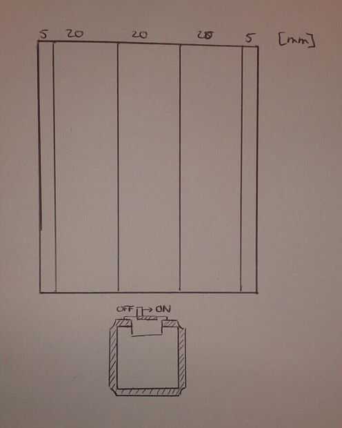 El clip se une a la carcasa con cinta de doble cara y el en/off-switch se sujeta entre la cubierta (también en la plantilla). A continuación se dobla la batería en la carcasa y luego ya tienes un producto de trabajo.