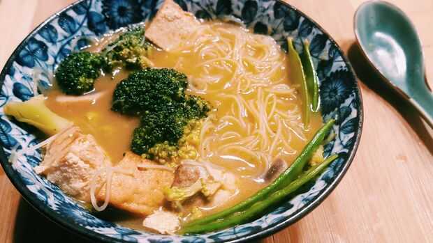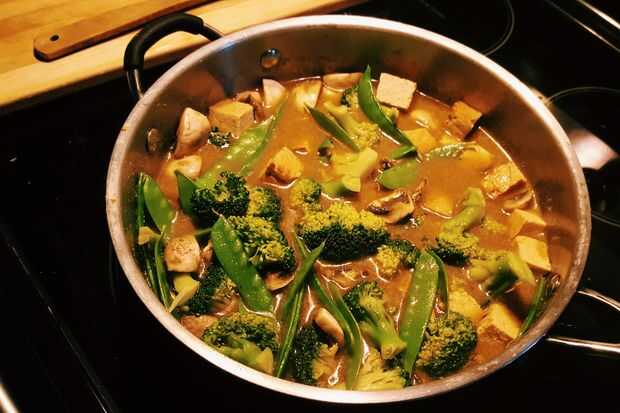 Esto es rápido, fácil y muy sabrosa. Más rápido y más barato que conseguir un punto de entrega.Vale la pena mantener la hierba de limón, hojas de Lima, y cilantro picado en su congelador - estos ingredientes realmente levantarán el sabor de un curry