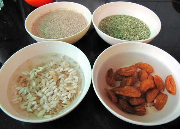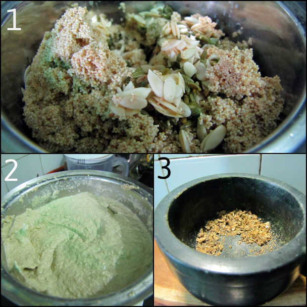 Una vez tienes los ingredientes remojados junto con otros ingredientes ya mencionados para la pasta (imagen 1). Hacer pasta añadiendo un poco de leche y pasta de pulir hasta forma una crema suave (imagen 2).