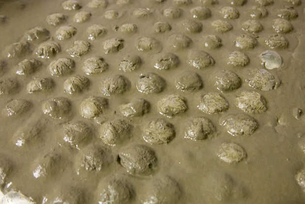 Presionar y alisar la mezcla hacia abajo en las burbujas.