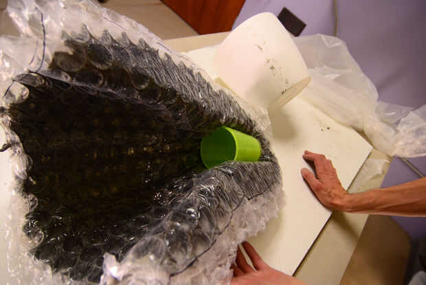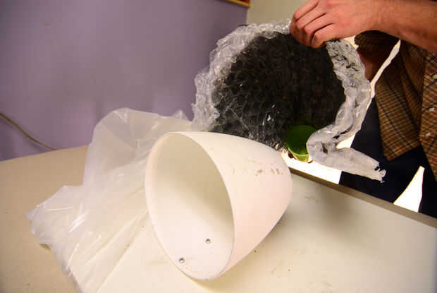Pro-Tip: No olvide que si el plástico de la captura lo que se ha cubierto sobre (en este caso, la taza verde), esa pieza se pega. La Copa verde consiguió capturada y no salga hasta que se rompió en trozos más pequeños... Idealmente usaría algo menos rígido, como una taza de espuma de poliestireno, y será mucho más fácil de quitar.