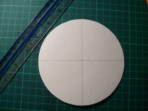 Ahora tienes tu disco. Usando el punto, la regla una línea recta a través del diámetro del disco. Ahora dibujar otro 90 grados para que para que tenga un gran +.