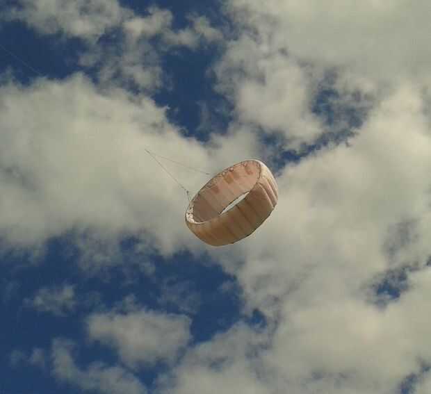 Luego hubo la Circoflex. Una cometa en una sola línea. La forma circular. Serena, sencilla, elegante, perfección. Pero tenía los largueros temidos! ¿Podría hacer volar sin perchas? Mis intentos de hacer cometas arco estilo aprendieron me que las fuerzas aerodinámicas en el cometa sí mismo es lo que se necesita para mantener su forma. Una conjetura salvaje, SurfPlan de David Aberdeen y todos los conocimientos que he acumulado durante los años he puesto en esta cometa. Resultó ser la primera sola línea cometa hecho y diseñado. El sentimiento de alegría y logro llegar con el primer intento de hacer esta cometa y verlo volar no se puede describir. Estaba sobre la luna.