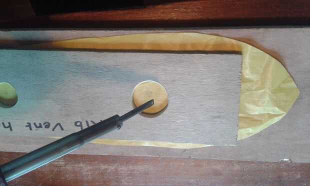 Para crear estos agujeros que necesita para marcar en el perfil. Hice una plantilla de madera con agujeros del diámetro adecuado así que podía usar un soldador para cortar hacia fuera. De lo contrario tijeras funcionará pero es más tedioso.