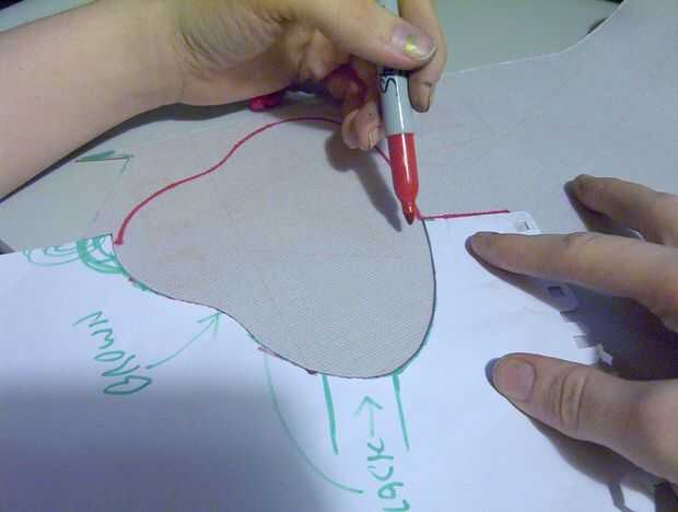 Agarra el material de relleno y colóquelo frente a lado incorrecto para arriba. Tomar la pieza exterior de papel y trace la forma de relleno. Trace la línea que forma la línea central de la forma como que hará más fácil la búsqueda del otro lado y viene bien más tarde. Cuando se traza el otro lado, sólo Dale la vuelta y remontar otra vez como estoy haciendo en la foto.