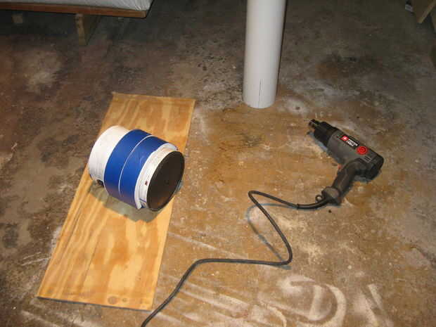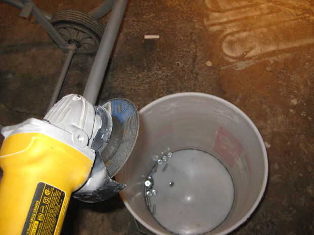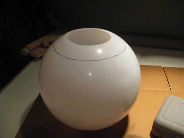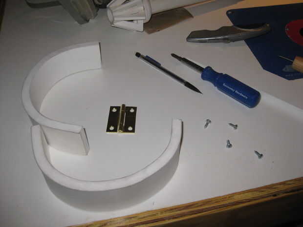 Fabricación: Dos tiras de láminas de PVC se formaron alrededor de una lata de pintura con la ayuda de una pistola de calor. Una vez formado, se recortan en la Sierra de mesa, conectados en una costura con una bisagra de la puerta pequeña y se incorporó en el frente con imanes de tierras raras. Para la mirada de remaches, yo corte las cabezas fuera de 20 pernos, perforar agujeros en el PVC para los talones y les con epoxi. Hice las puntas por formar más el PVC en una lijadora oscilante y adjuntarlos con epoxi. Imprimación, pintura de aerosol metálica y unas capas de spray laca habían acabado.