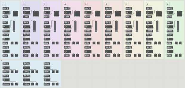Cada canal MIDI se asigna a un número de objeto y su interfaz de Max equivalente (botón para botón, marcar para el pote, slider deslizante, etc.) por lo que es fácil hacer un seguimiento de los datos desde el controlador. Instalé este parche para que gráficamente coincide con el NanoKontrol diseño-esto ayuda a asegurar que se asignan correctamente los botones, deslizadores y macetas.