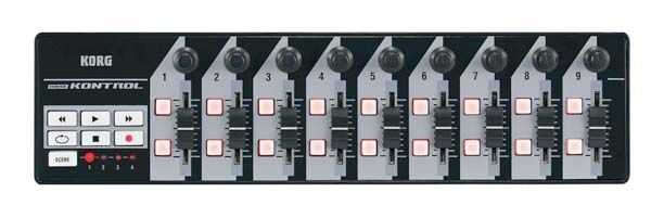 Usé un Korg NanoKontrol como una interfaz táctil para este proyecto. Es una simple superficie de control USB I/O con ollas, deslizadores, botones de bloqueo y una grabación/reproducción/<> sección.