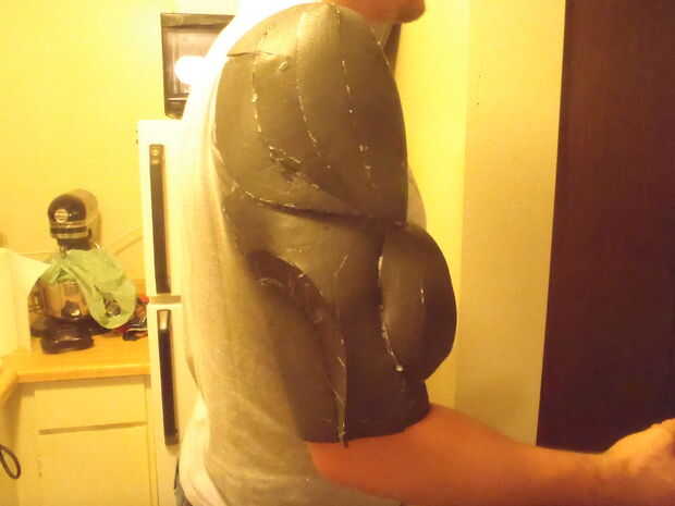 Una vez que ambos brazos se construyeron yo revestido en cemento de contacto y luego se coloca sobre una capa de paño de queso. Esto le da fuerza a las costuras para evitar desgarros.