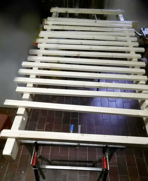 Después de usted puede poner los tacos en los listones con un martillo (mazo).