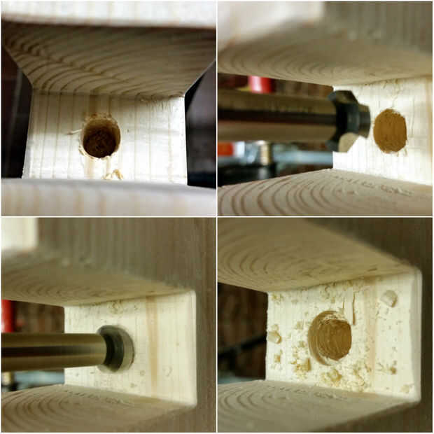 Los tacos hacen los listones de permanecer centrado en la brecha en la viga. Marqué los agujeros en la viga con un sacador de centro automático como se puede ver en la foto de arriba.