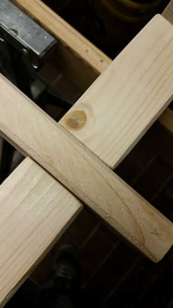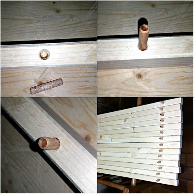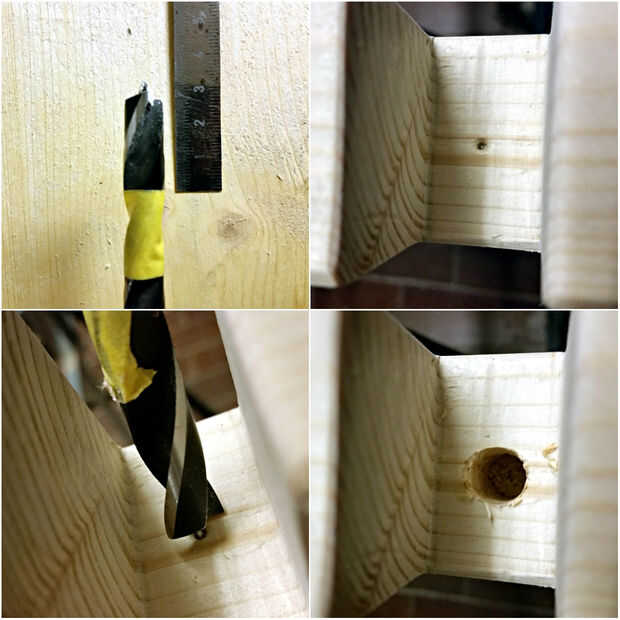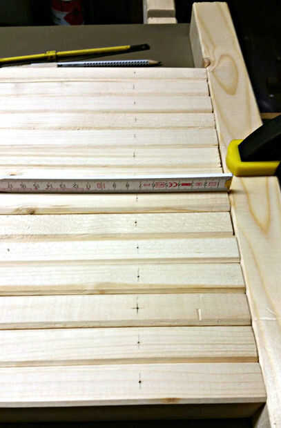 Marcar los listones de abeto en el centro con la correcta distancia a la frontera, ahora fácilmente puede perforar agujeros en ellos.