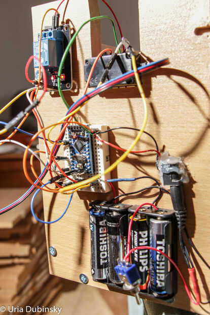 Bueno, lo primero que tenemos que tener en cuenta es que tenemos dos proveedores, 4 baterías AA, suministros juntos el arduino con 5 voltios (6 en realidad) y una gran batería voluminosos suplies el ventilador y el servo con 12v.