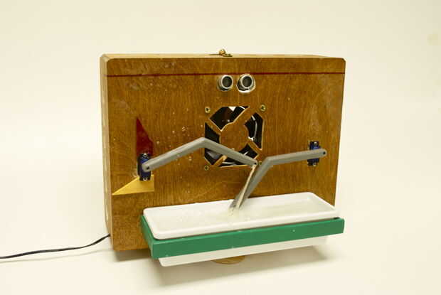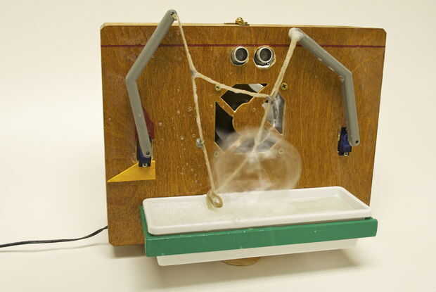 Decidí crear una vuelta apagado de una máquina de burbuja porque creo que sin importar la edad usted, burbujas siempre será fascinante. Otra razón en la elección de esto era porque las burbujas fueron un tiempo pasado de mi favorito de la infancia. Siempre he intrigado por cómo se hacen las cosas y cómo funcionan las cosas. Creo que con este artilugio he mantenido la experiencia manual de soplar una burbuja mientras sigue creando un dispositivo electrónico y mecánico.