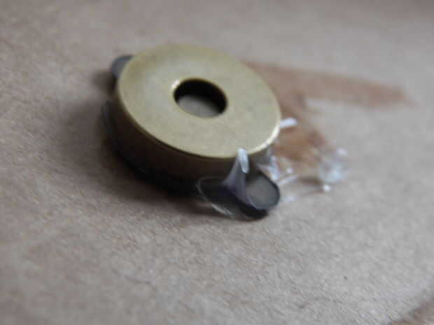 Ahora toma el cierre de la bolsa magnética y aplanarla con las pinzas para que los dientes que pudiera sostener a la bolsa son planos, o si sólo puede romperlos apagado, cuadro 9. Si usted no tiene un complemento magnético monedero puede utilizar dos pequeños imanes redondos. Fijó el grande la mitad de la presión en la solapa posterior de la caja, entonces marca el lado de las aletas para que sepas dónde cortar para que queden en posición plana, luego recorto, cuadro 10. Ahora pegue la mitad grande de la broche de imán en la solapa posterior, cuadro 11. encaje la mitad poco por encima de la gran media que ahora está pegado a la caja, poner algunos caliente del derretimiento pegamento en la pequeña half(picture 12), a continuación, doblar la pieza de acento de cartón donde se anotó lo hacia abajo encima de la caja para que se pega a la copia instantánea. El caja tiene ahora una gran tapa mira que es fácil de abrir para upgrades de hardware y similares!