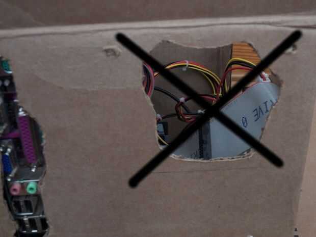Primero, corte un agujero lo suficientemente grande para los sujetadores de abanico a clip en el cuadro 2. Mina es amplio ya que me había desordenado y el agujero original demasiado el derecho;) No te preocupes si el orificio no es bonito, nosotros nos ocupamos de él:)