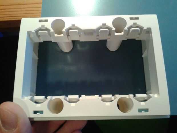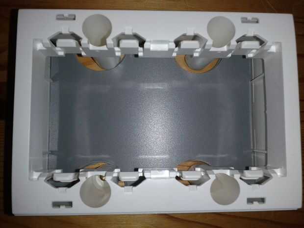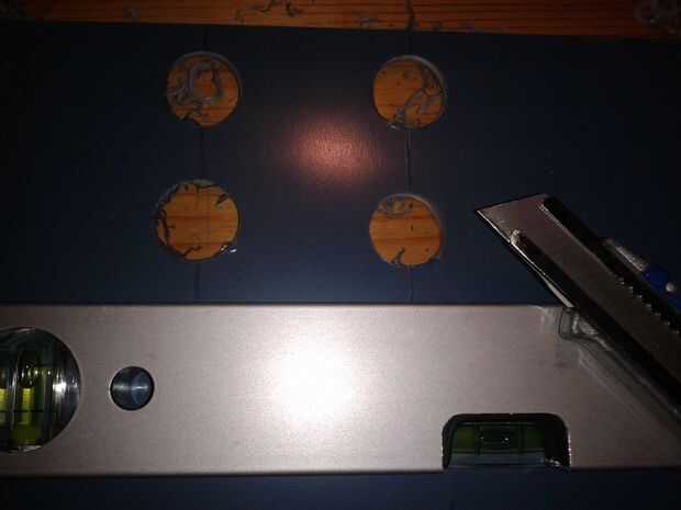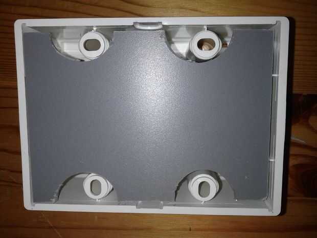 La cubierta no tenía ninguna trasera donde podría encajar la Junta PoKeys y PoSensors, así que tuve que hacerlo yo mismo. La placa base se hace del material del PVC de 3mm. Utilicé la caja para marcar sus límites y cortarlo con un cuchillo de papel pintado.