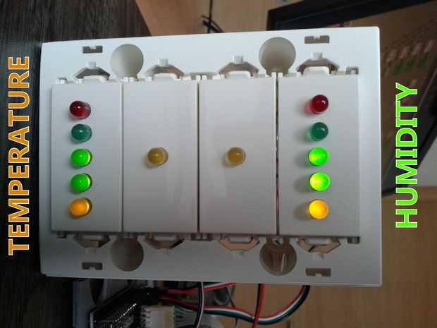 Mi medidor de confort está montado en la pared. Es 21° C, en el comienzo de la zona de confort, y la humedad es en el 30% de humedad relativa, relativamente seco por la calefacción en los meses de invierno.