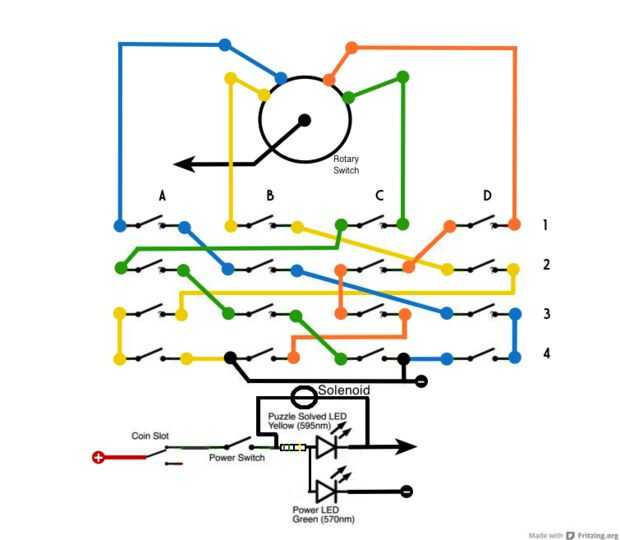 Una vez que todos los interruptores correctos han sido volteados, se encenderá el LED de color ámbar (amarillo).