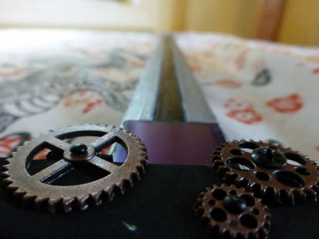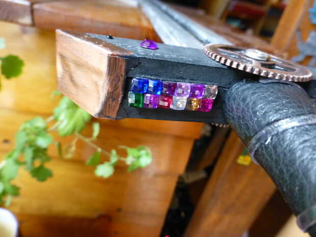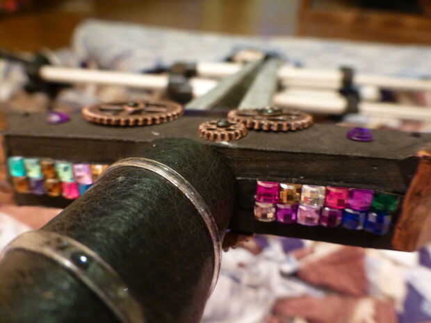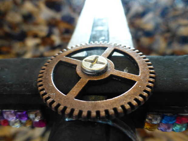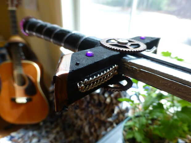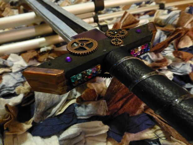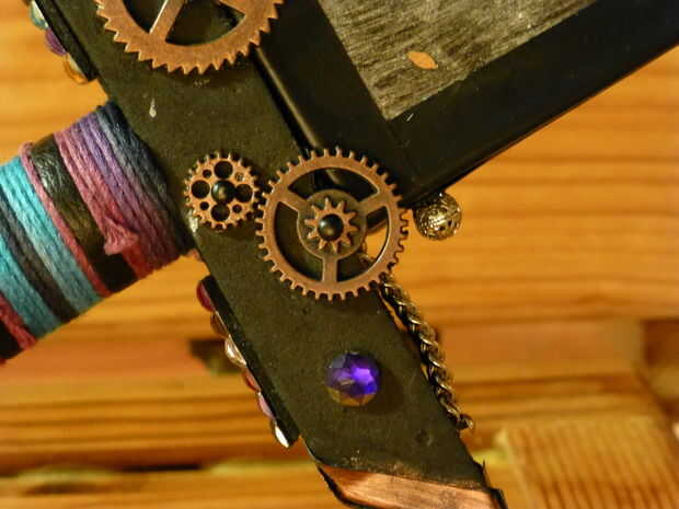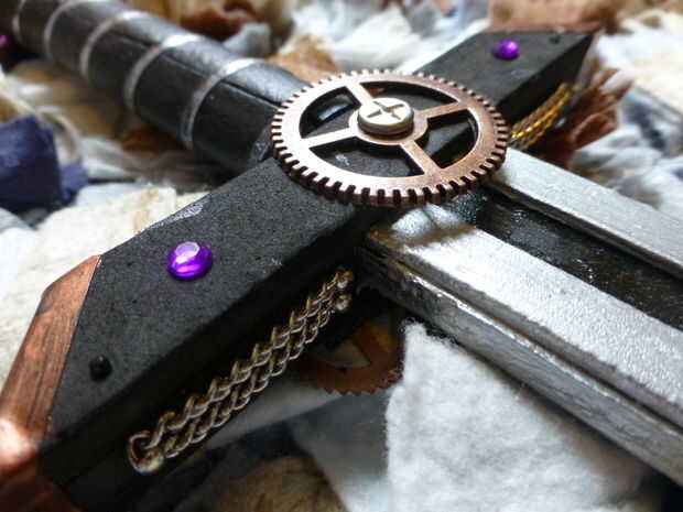 ACTUALIZACIÓN: Ha cambiado un montón de cosas! La línea negra de la hoja es de color negro brillante, pero me olvidé de fotografiar. Uno de los engranajes, las joyas son manera más ahora, y el mango se rehace completamente.