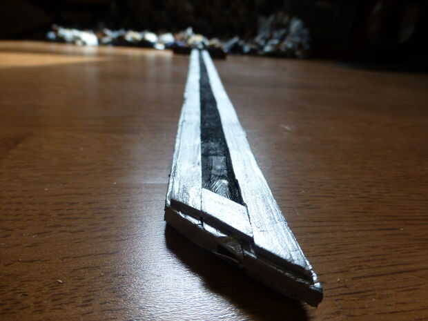 Sobre la barra de base: Encontré un proveedor en línea y ordenó a varillas de fibra de vidrio de 4mm y una varilla de 3mm cuadrados de fibra de carbono para probar. La fibra de carbono es más rígido y mucho más ligero que la fibra de vidrio. Debe ser más fuerte, demasiado, razón por la cual tengo 3mm en lugar de 4 mm. He utilizado uno (es caro) varilla de fibra de carbono en esta espada. La fibra de vidrio, por el contrario, es mucho twangier y también más pesados. Mucha gente encuentra mis espadas un poco demasiado ligero, así que si eres alguien que le gusta tus armas un poco fuerte, por todos los medios, probar de fibra de vidrio. Tenga en cuenta que heavy significa que necesitará más acolchado.