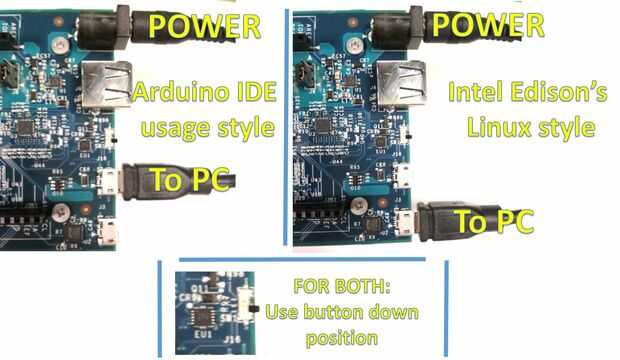 Si desea utilizar Intel Edison parece Arduino para cargar un código desde el IDE de Arduino a la Junta, usted necesita cambiar hacia abajo. Qué quiero decir por abajo, por favor la foto que os adjunto aquí en la parte superior. Para el uso de periférico, cambiar al principio.