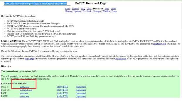 Buscar en Google para Descargar Putty. (Para x64 usuarios de Windows pueden utilizar x32 versión de Putty, que está trabajando)