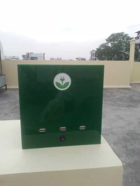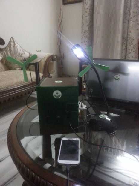 Tiene una salida USB separada para células solares, generador de crancked de mano, los molinos de viento respectivamente. Lo mejor de este diseño es que incluso si hay un día nublado en el exterior puede todavía cargar su teléfono o conecte altavoces bluetooth usb o resplandor de una lámpara led sólo girando una manija en la parte posterior del cubo.