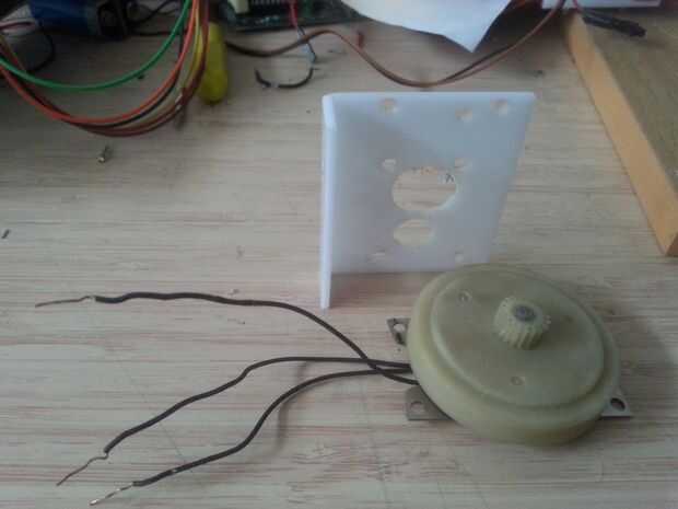 En principio previsto sobre el uso de un motor paso a paso pero luego cambia a una CA de 3 fases motor porque el motor paso a paso que tenía tipo de pesado y el motor de 3 fases que rescatado de un generador se manivela de mano de algún ligero y más eficiente.