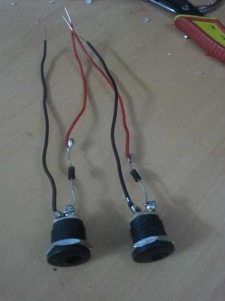 • del mismo modo, la soldadura de los cables de negative(black) de las dos tomas dc haciendo un carril negativo.