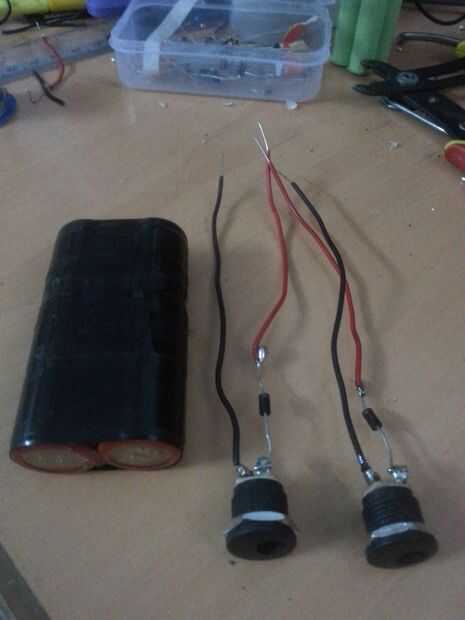 • Ahora, toma un pequeño perfboard y soldar los cables de positive(red) de las dos tomas hembra dc haciendo un carril positivo