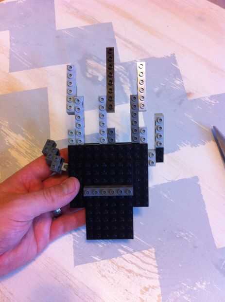 Probablemente el paso más difíciles para conseguir todo lo alineado derecha. En caso de que te has perdido en el paso 1, se necesita una combinación de ladrillos de Lego y los ladrillos de Lego Technic. En la primera foto que se pueden ver todos los dedos separados y luego cómo adjuntar a lo que será la parte posterior de la mano, entonces cómo cubrir la palma de la mano y coloque los ladrillos Technic finales en la palma. Es vital que esta pieza gris ser una pieza técnica por lo que tiene los orificios necesarios que usted va a necesitar más adelante.
