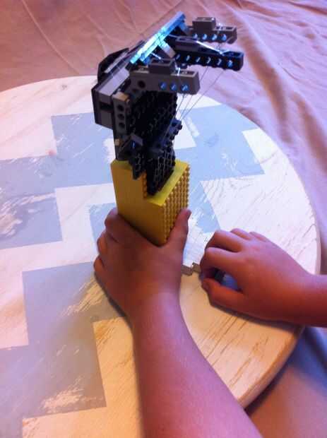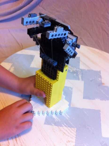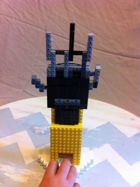 Su mano debe caer y encajan perfectamente en el antebrazo. Asegúrese de que combinar los dos, piezas de 2 x 3 amarillo que he mencionado anteriormente son vitales, luego coloque todo en la base, y que son buenos para ir! La "barreta" debe ser accesible desde nos ensarta a través en el último paso, así que le dan un ligero tirón y viola! Patrones de color diferentes pueden utilizarse para agregar su propio toque personal.