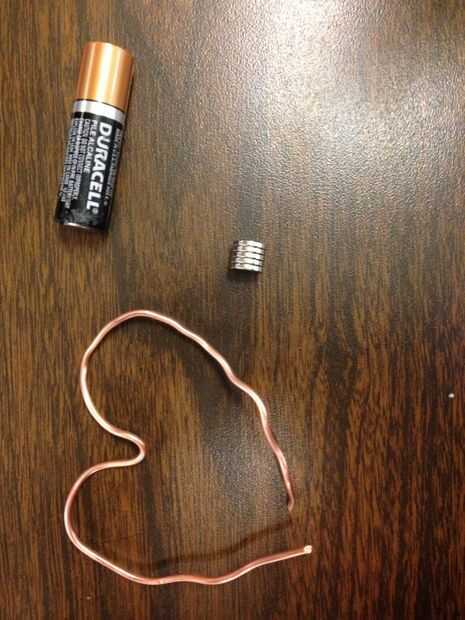 Estas son las fuentes que se le need.2 imanes, 1 batería y 1 pedazo de alambre de cobre.Paso 1: Paso 1: poner juntosConecte los dos imanes a la batería. Entonces tuerza el alambre en una pieza en forma de corazón y tratar de conectar ambos extremos a
