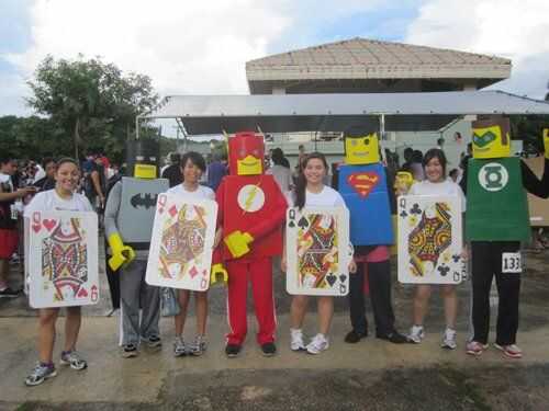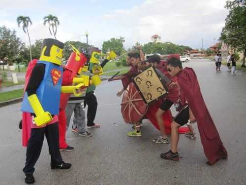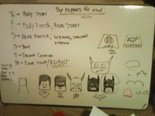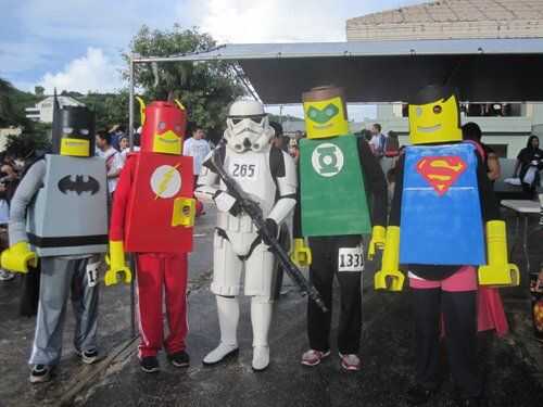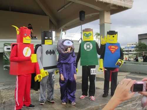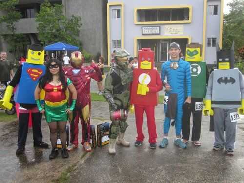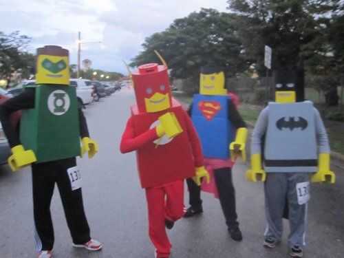 Pasado Halloween nos ganó por el mejor disfraz en la categoría de grupo en el truco o el tratar 5k caminata, carrera; estábamos disfrazados de Pacman y los fantasmas. Este año he decidido que debemos ser personas de Lego con un toque--la Liga de la justicia. 5k se celebró ayer 30/10/10 y tomó el primer lugar en la categoría de grupo. Fue horrible corriendo en esto porque es muy caliente, con poco aire que entra. Al final valió la pena porque lo hicimos en el periódico local y todo el mundo quería una foto con nosotros!