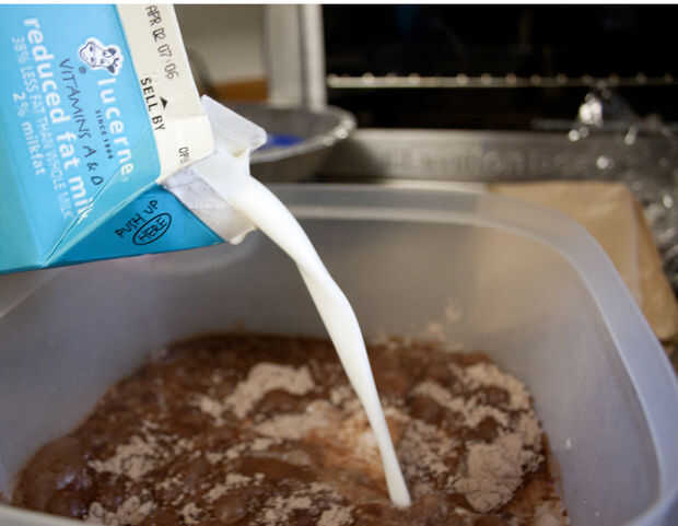 Paso 2: Vierta el pudín en tazón de fuente y agregue 2 1/4 tazas de leche.