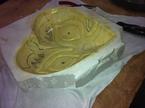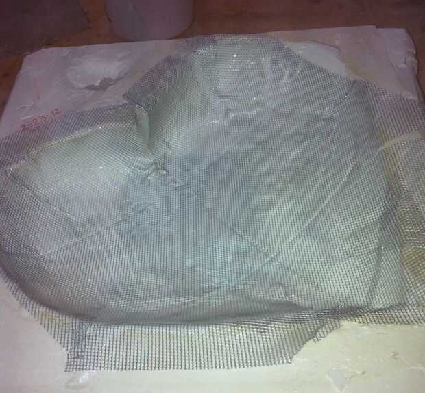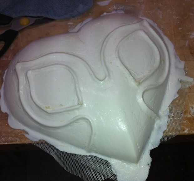 He utilizado 10 capas delgadas de Smooth-Cast 300 resina para conseguir una bastante incluso fundido. Después de había vertido mi primero dos capas que establecer en una malla de alambre para ayudar a agregar a la integridad estructural de la máscara. Los otros 8 capas cubren la malla con 1/2" a 1" de la resina. El molde tenía que ser rotos para quitar el molde, pero el resultado fue mucho mejor que la primera carrera.
