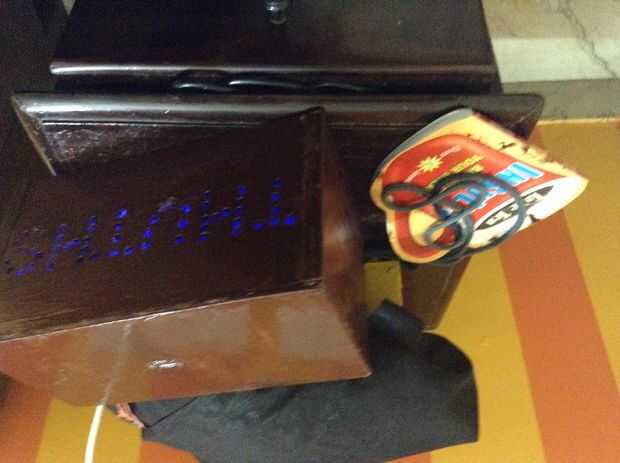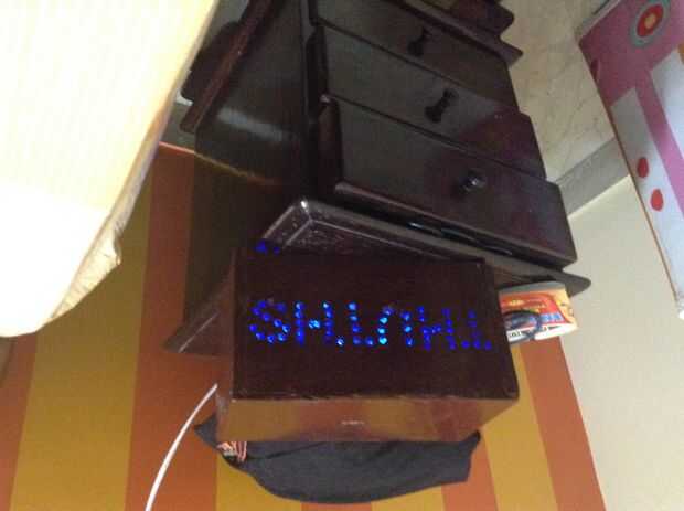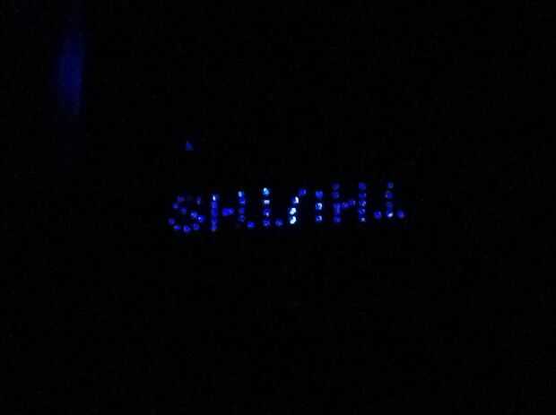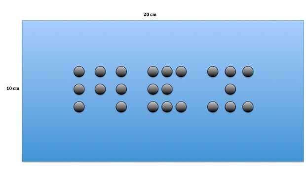 Cortar 3 piezas de madera de x 5″ 10 (dos de media pulgada) y uno de cuarto de pulgada como la plantilla a continuación, elaborar una versión escalada del texto y agujeros en aproximadamente la posición del texto. Los orificios no deben ser demasiado estrecho, de lo contrario la broca se mantenga deslizarse en el agujero adyacente (a menos que tenga una prensa del taladro, que no). No importa si el texto no se ve legible, era lo mismo para mí, pero toma forma mejor en la madera.