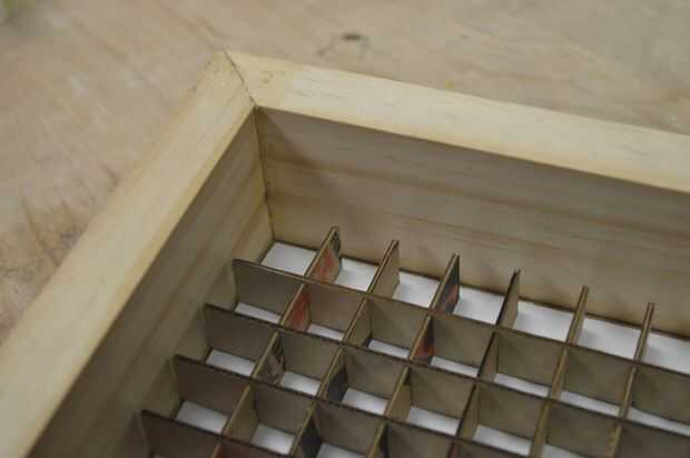8. La estructura del acabado cortando un cuadrado de 278mm con papel usando tijeras o el cortador del laser. Esta pantalla de papel se colocará entre la ventana de acrílico y la rejilla, ayudando a dispersar la luz.