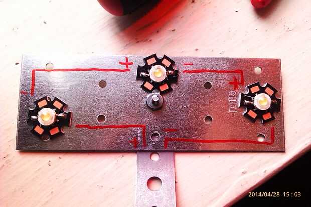 Esto está conectado en serie > 9.6-10.2V @ 350mA / 3 x 1W led de alta potencia 430nm