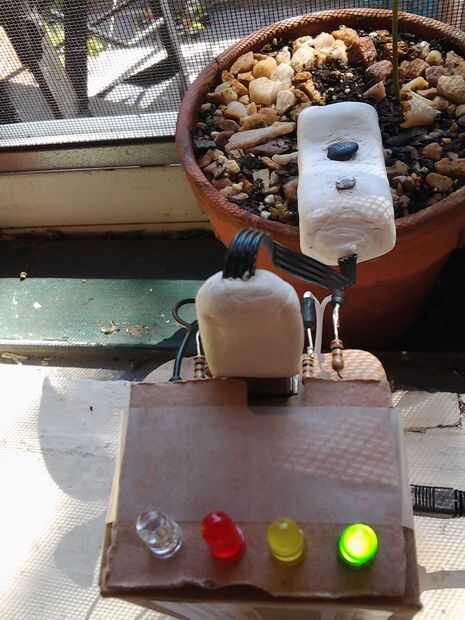 Amarillo significa planta está durmiendo (no luz) o falla en el sistema de iluminación, si la luz está apagada durante en el escenario.