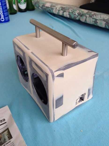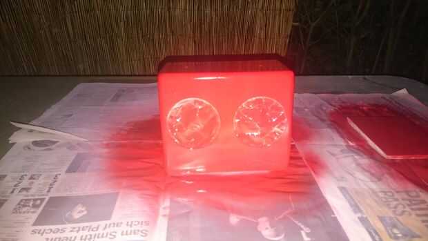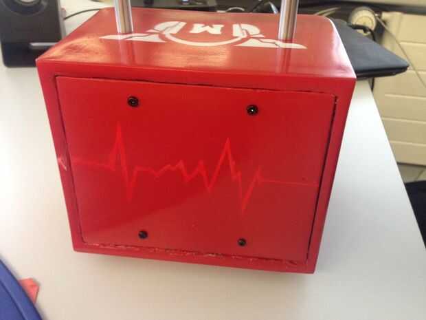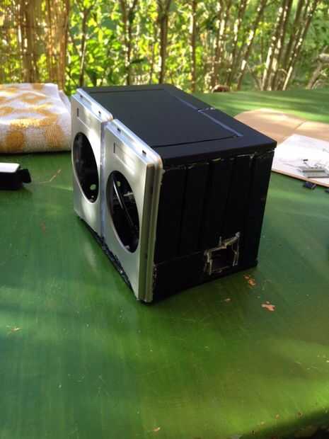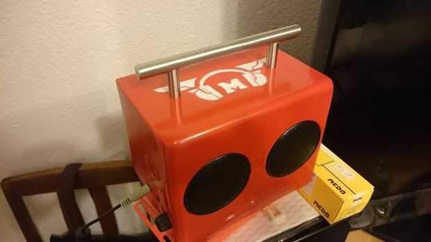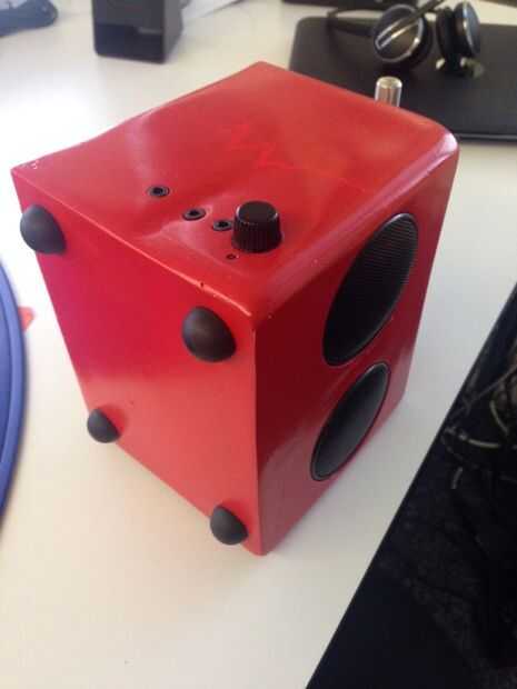 Junto con un amplificador de un dan HP sonido sonido rojo un pequeño cubo de 2 x 2,6 vatios