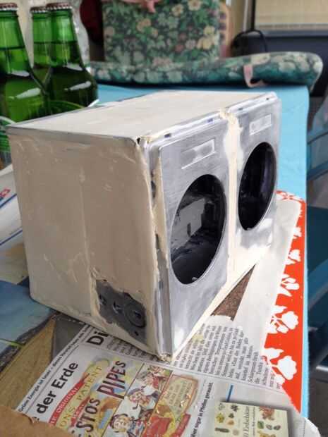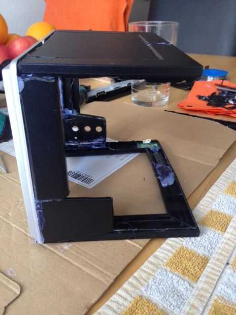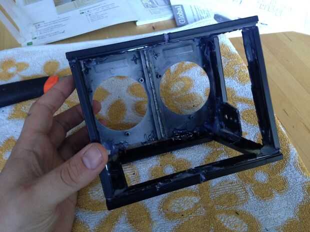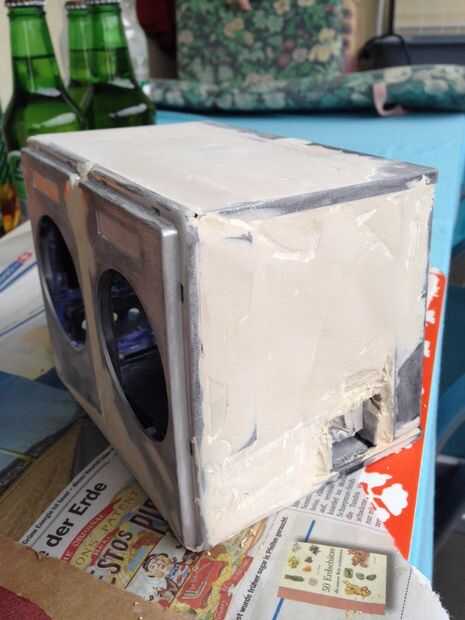 El caso es de plástico de una vieja pantalla de Dell y 3 capas de masilla.