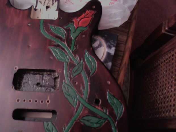 después de inti es quemada la guitarra decidir sobre el color de pintura o manchas que desea utilizar usé tinte y pintura (pintura de esmalte funciona mejor, alojarte de LAYTEX pintura que pela apagado y AGRIETARÁ y realmente no se ven grande jejeje), pero su elección en lo que decidas usar después de recibir la guitarra pintada o manchada utiliza una espesor de la laca o poliuretano para sellar puede para utilizar al menos 3 capas de poliuretano para que tengas una buena capa protectora en la guitarra después de la primera capa de poliuretano (una vez su dry) use lana de acero antes de las segunda y terceros capas iby haciendo la lana de robar puede hacer que el poliuretano se parecen a una capa de lo vidrio será tan clara y brillante. Vuelva a colocar sus componentes electrónicos en la guitarra y mermelada lejos.