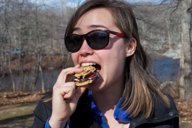 OK, he terminado con bacon por ahora, pero permite no dar para arriba en los ingredientes del desayuno todavía. Gofres hacer grandes recipientes para ingredientes dulces y deliciosos, así que por qué no utilizarlos para s ' Mores. Lydia tiene demasiado creativo con Nutella y frambuesas.