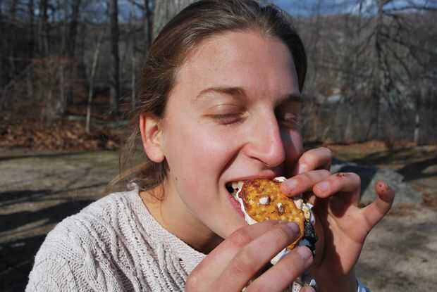 ¿Te apetece un poco de sal? Intente reemplazando la galleta con un pretzel y agregar una taza de mantequilla de maní en lugar de chocolate recto. Y por qué no un pedazo de plátano sólo para la buena medida. Patchi ama pretzels.