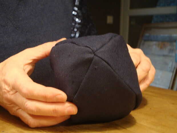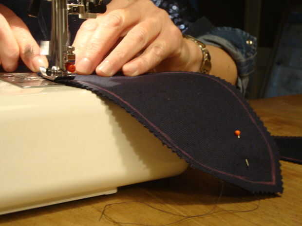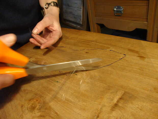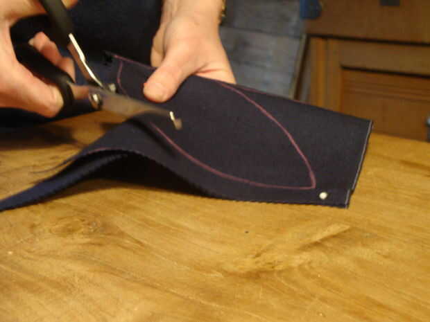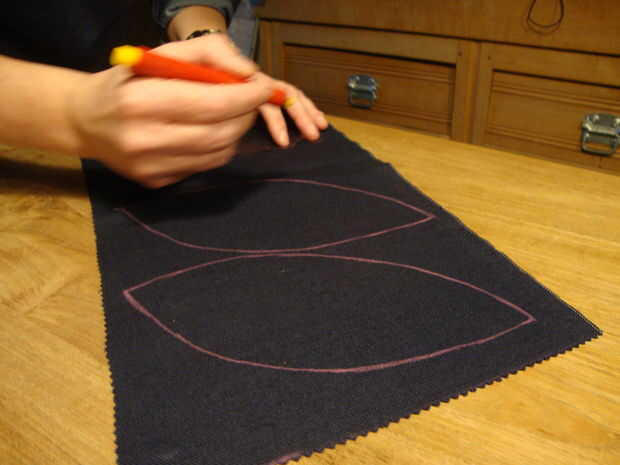 3) ahora dibujarla en la tela y otra vez: corte hacia fuera!
