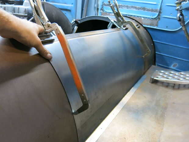 El mismo proceso se realizó con las extensiones de arco de rueda ancha de 5 pulgadas. Usé una plantilla de cartón para asegurarse de que llegaron a la derecha. Una vez entra al vehículo, luego fueron tachuela soldada con autógena en lugar.