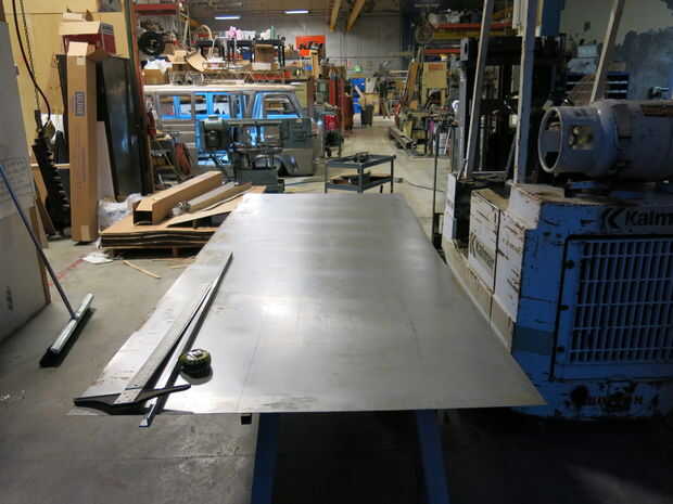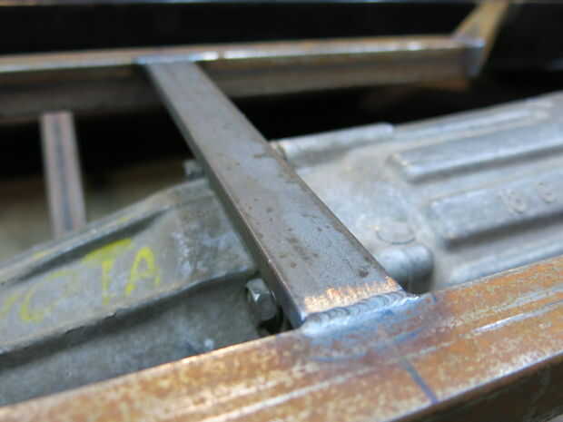 A continuación se que necesitaba construir el soporte del piso para que el recinto tenía lugares seguros para unir. Lo hice con un tubo cuadrado de 1" y algunas secciones de barra plana de 1/4" para abarcar una sección apretada sobre la transmisión. Luego sacó el panel del piso principal en una pieza fresca de 18g y córtelo hacia fuera con un disco zip (corte de la rueda) una amoladora angular.